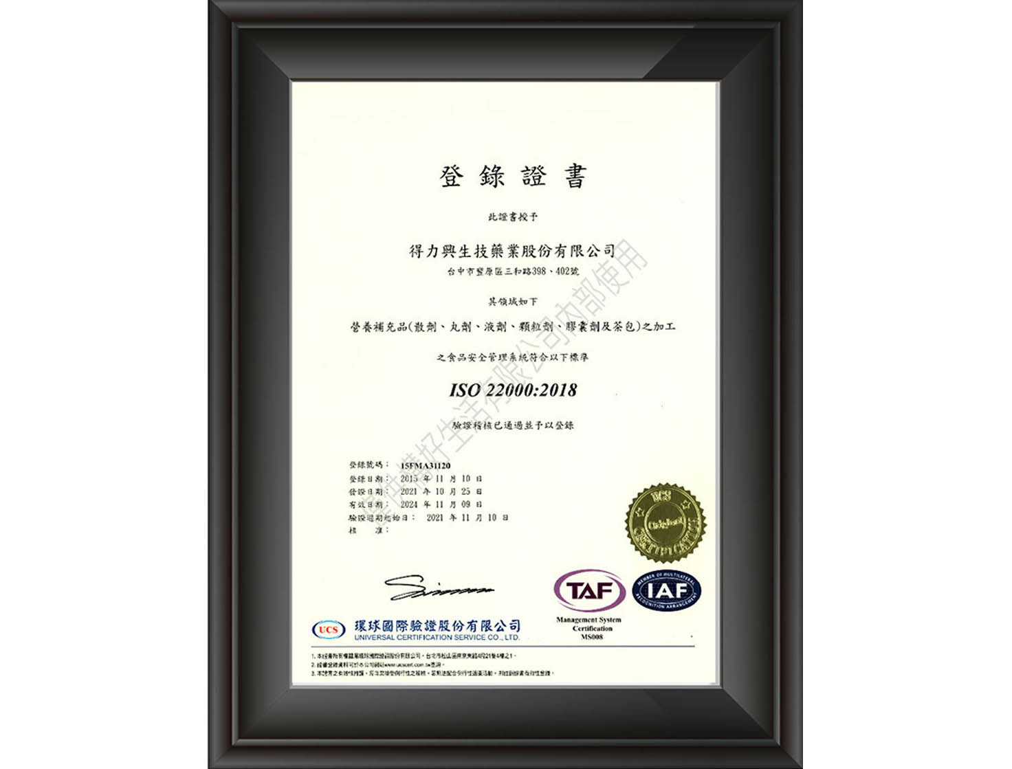 擁有 ISO 22000:2018 認證,代表企業在食品生產過程中達到了國際級的安全與品質管理標準,讓消費者更安心信賴產品。