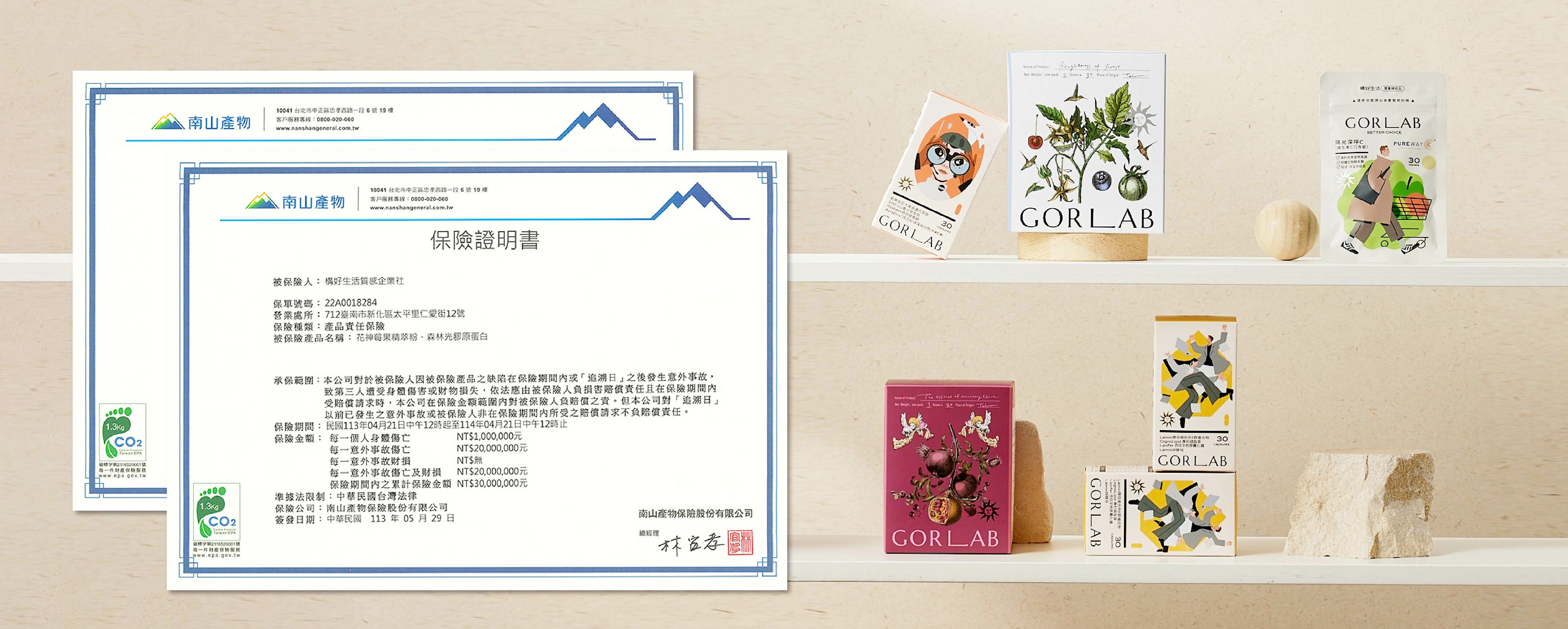 GORAB構好生活全品相保健品皆投南山產物產品責任險。