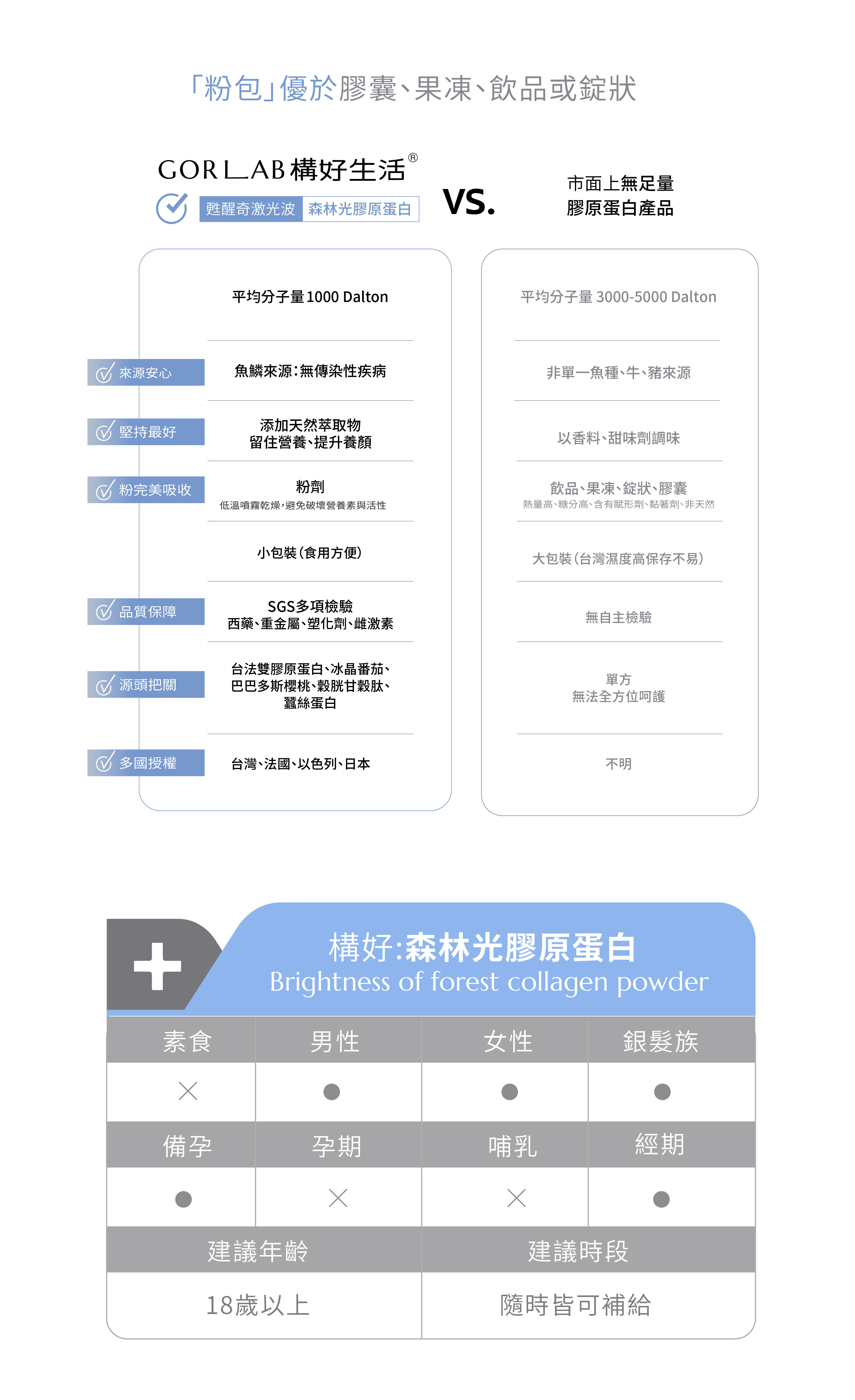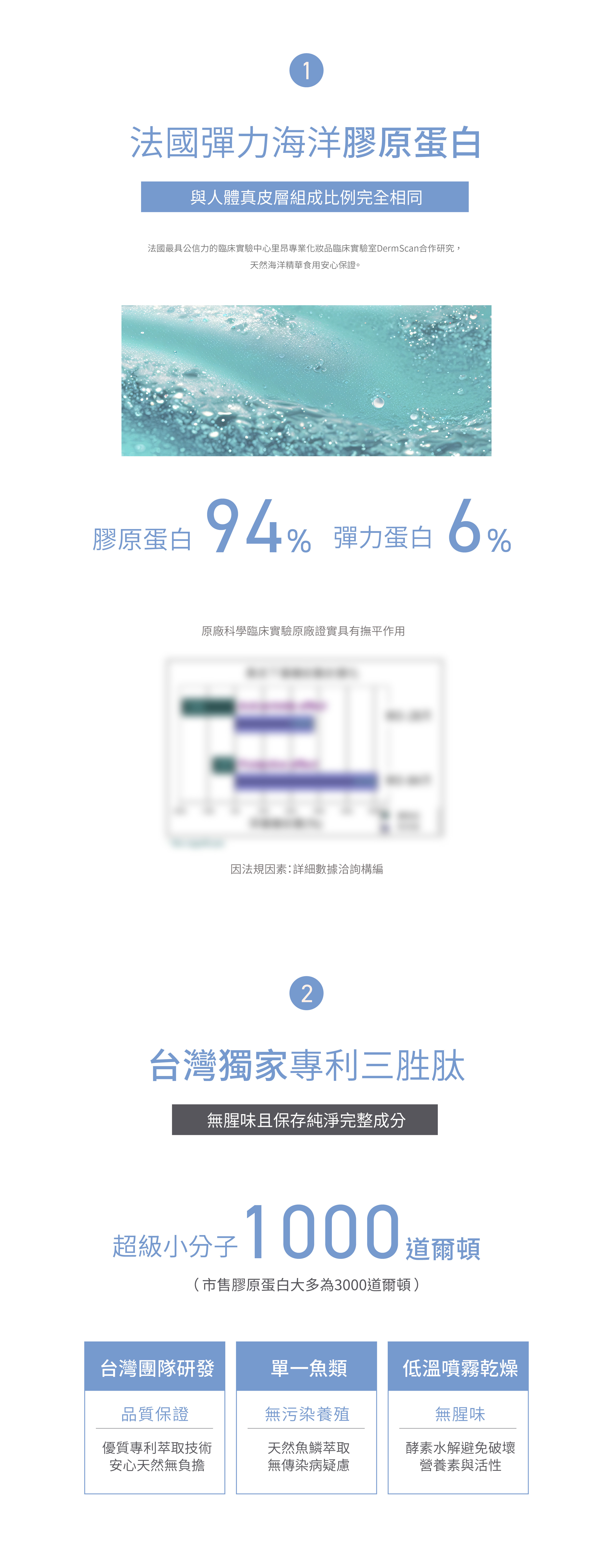 ⊝韓、法雙膠原膠原蛋白,不需高劑量膨潤有感