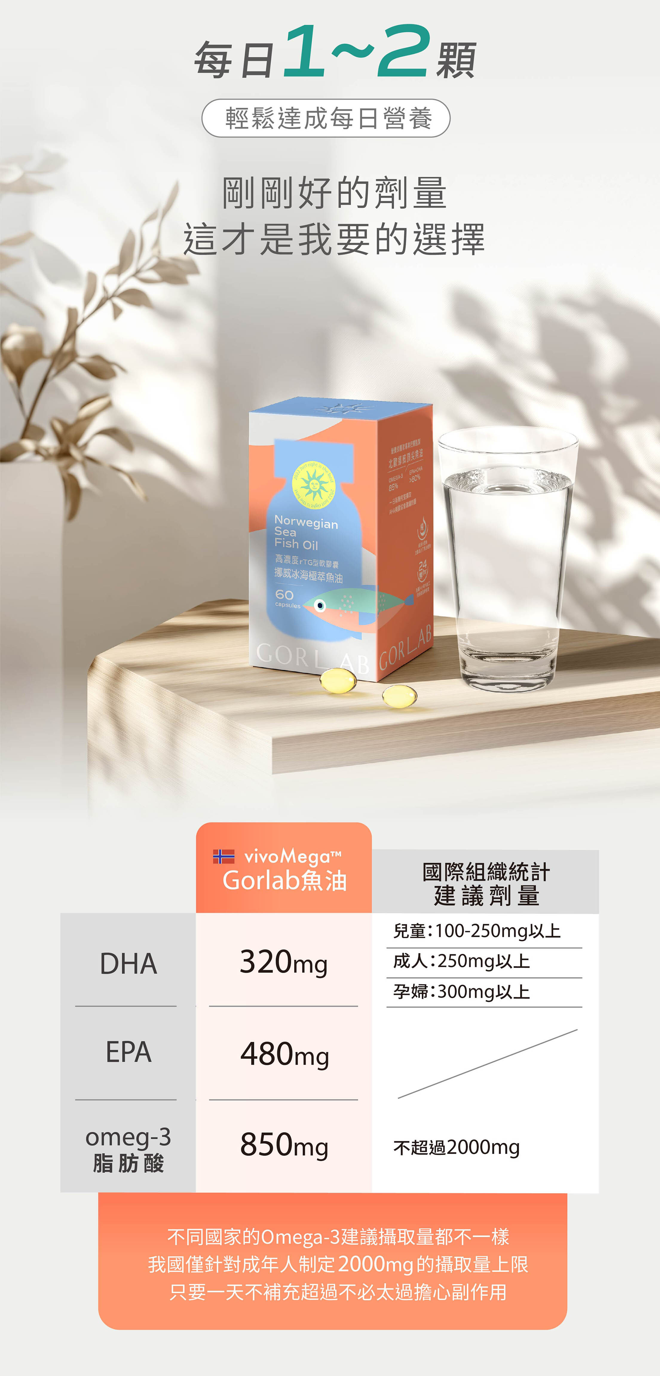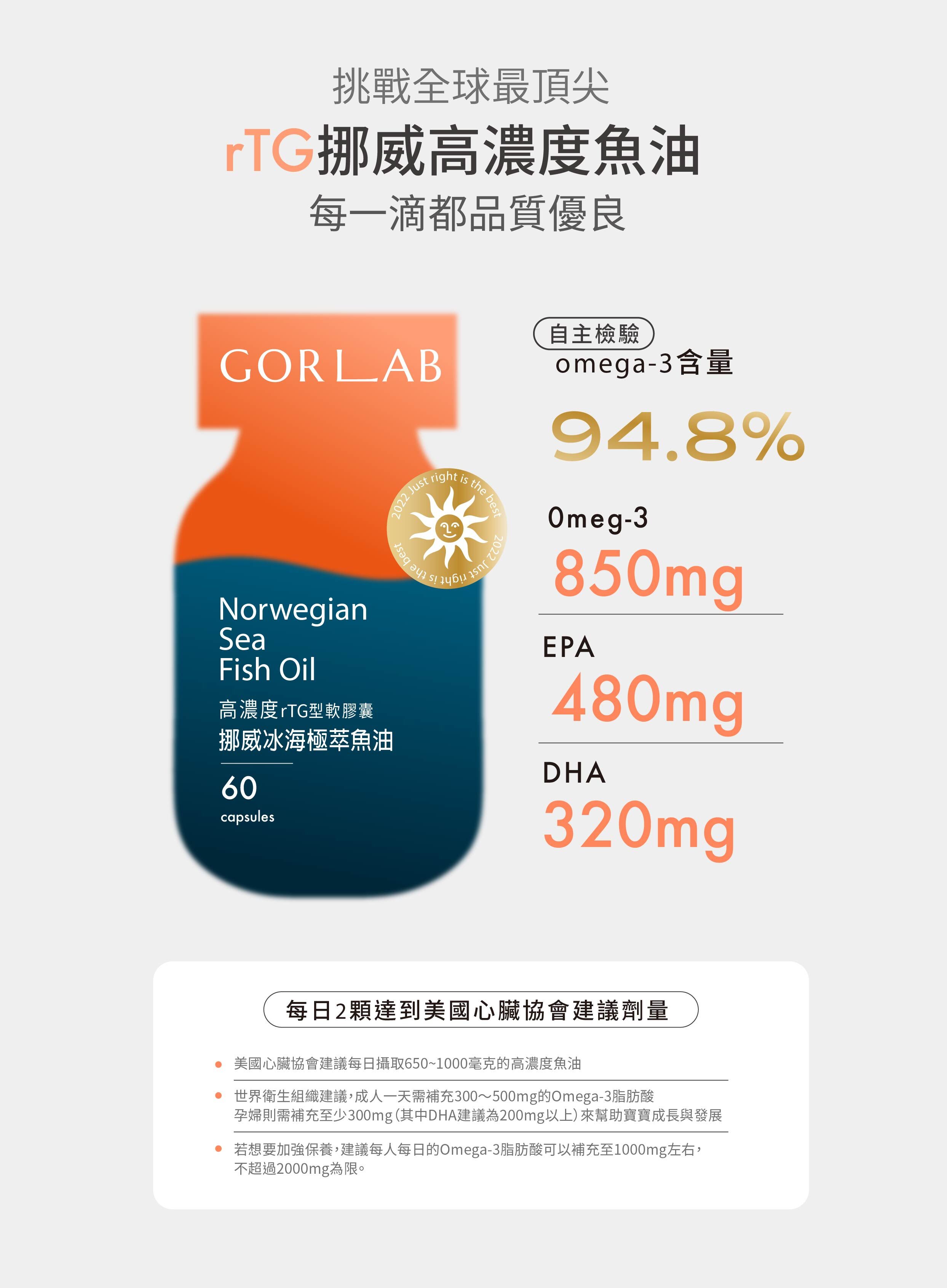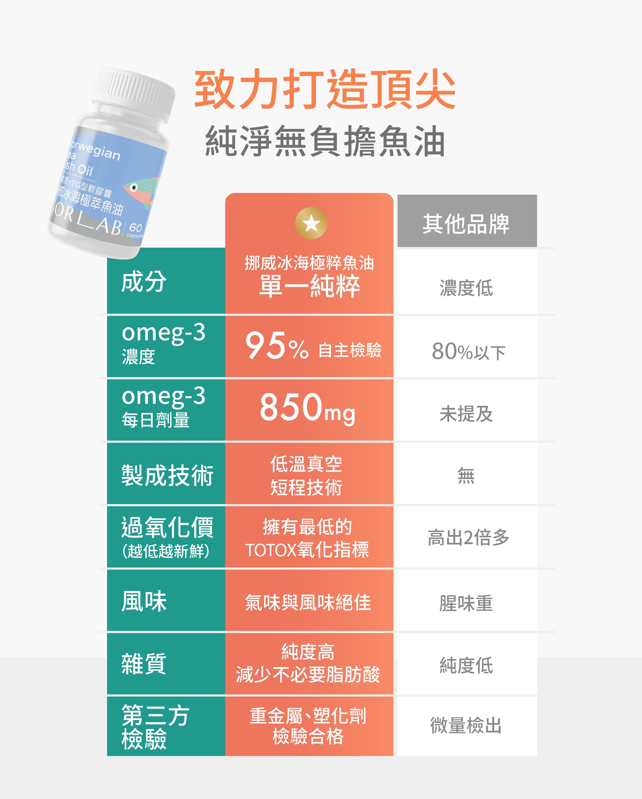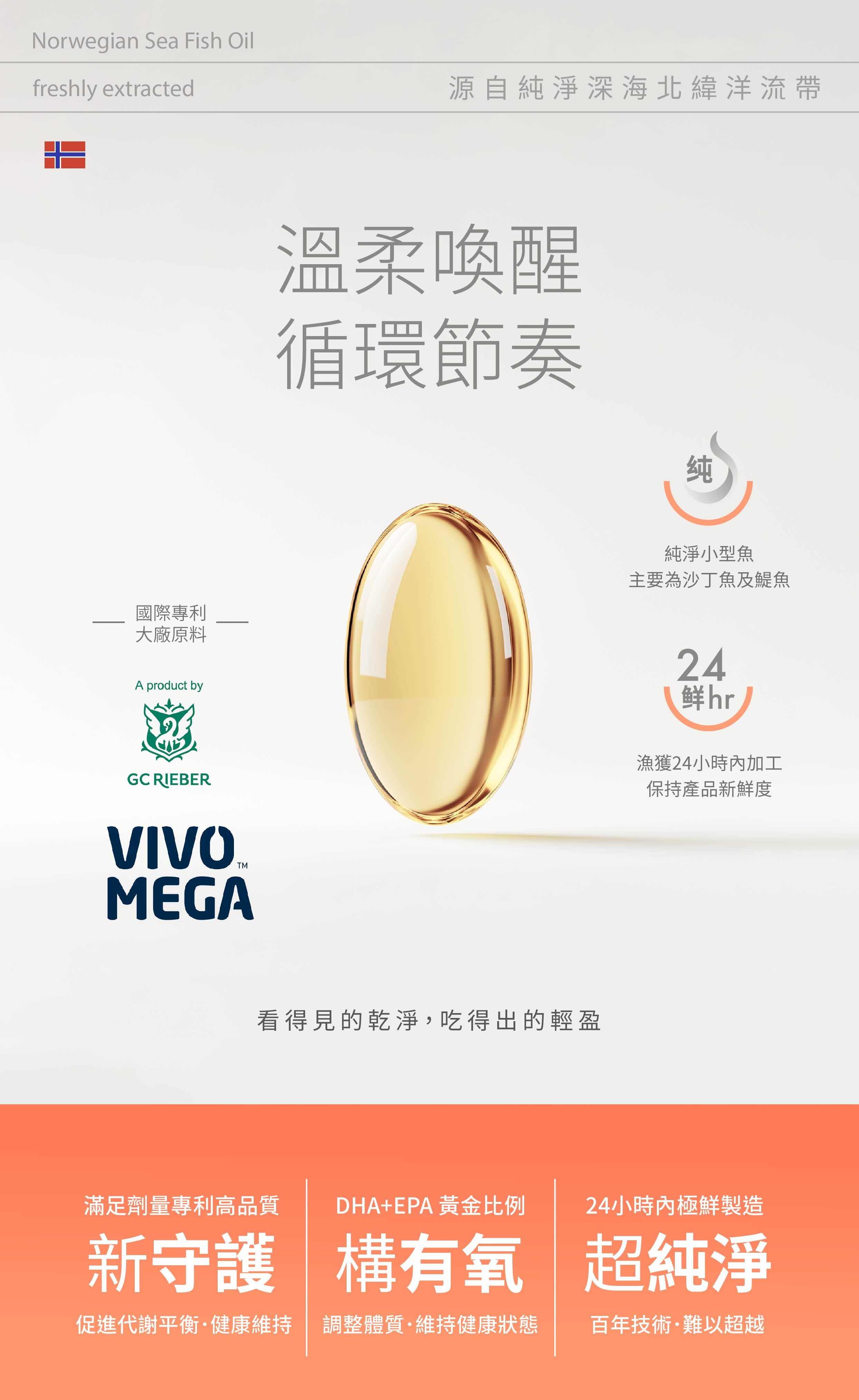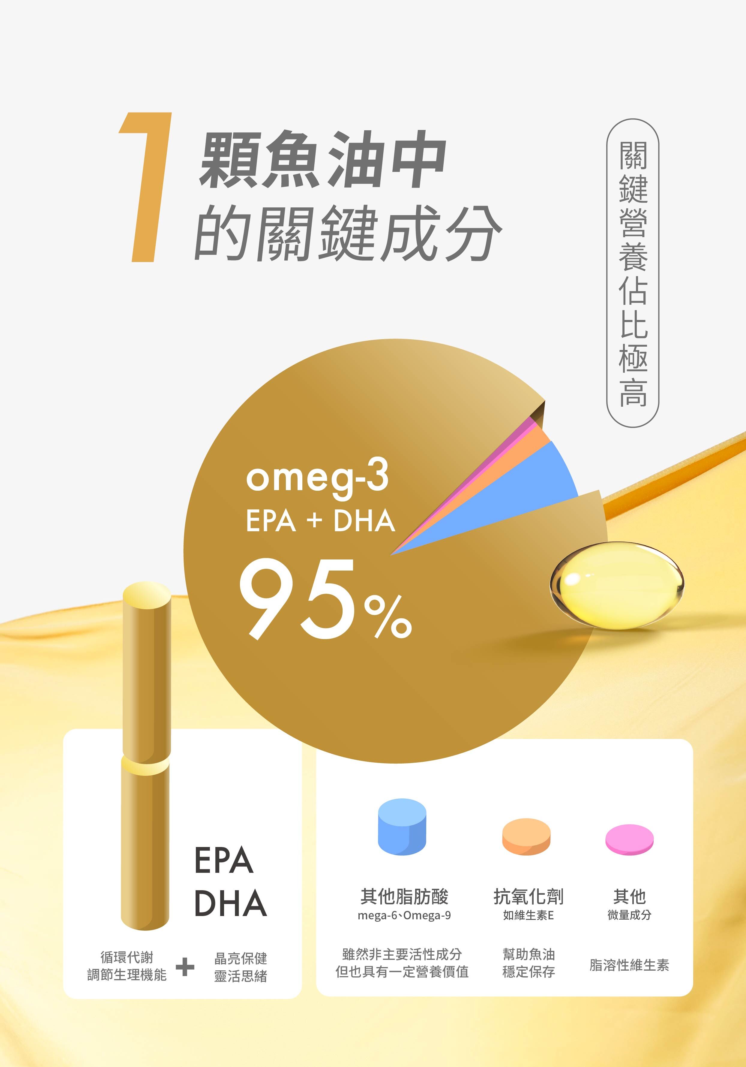 ⊝挪威冷海的純淨魚油,富含Omega-3脂肪酸