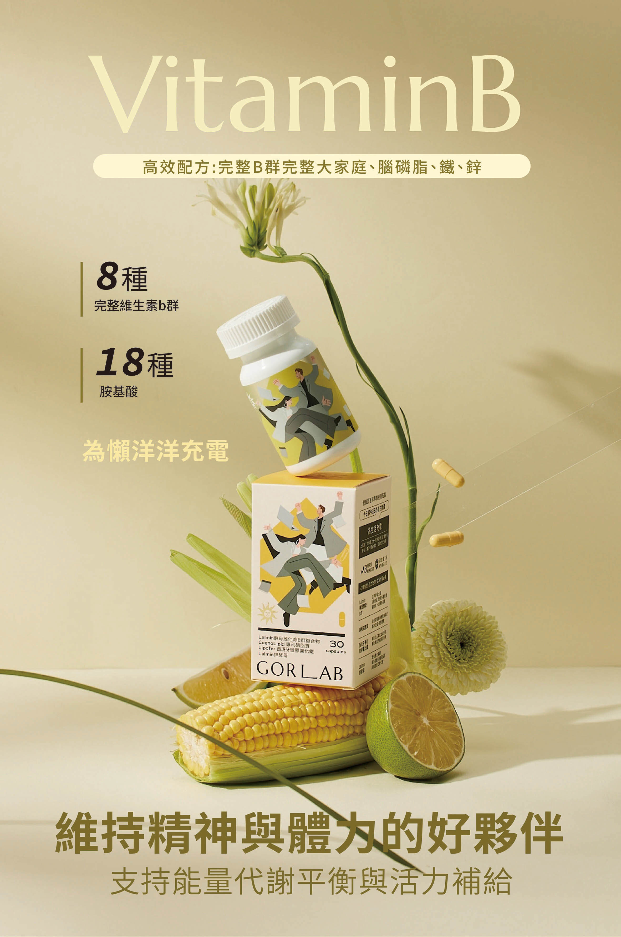 ⊝添加酵母B群大家族B1、B2、B6、B12等,8種完整維生素B群+18種氨基酸