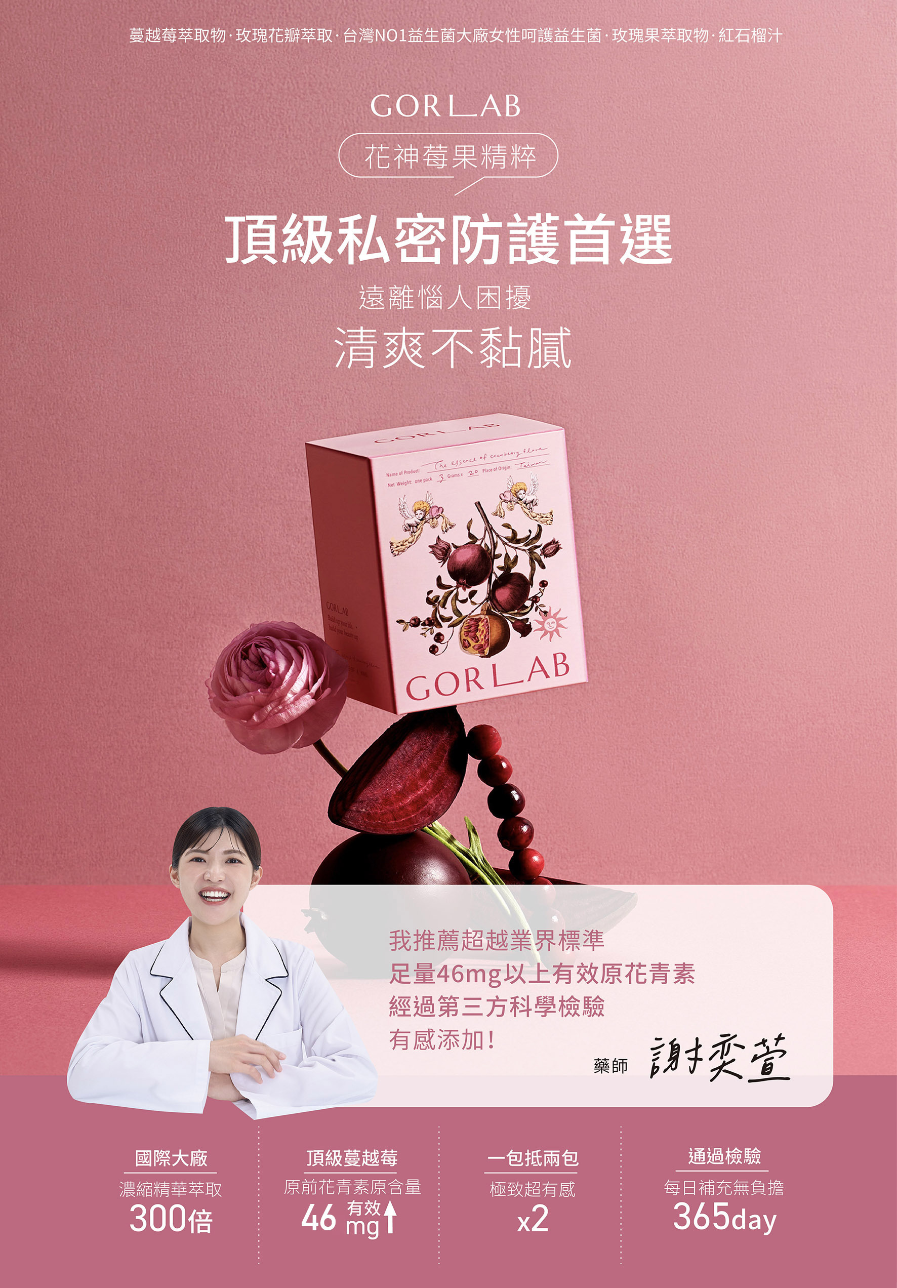 ⊝Cranpure 法國專利300倍高濃度萃取蔓越莓,提升呵護力