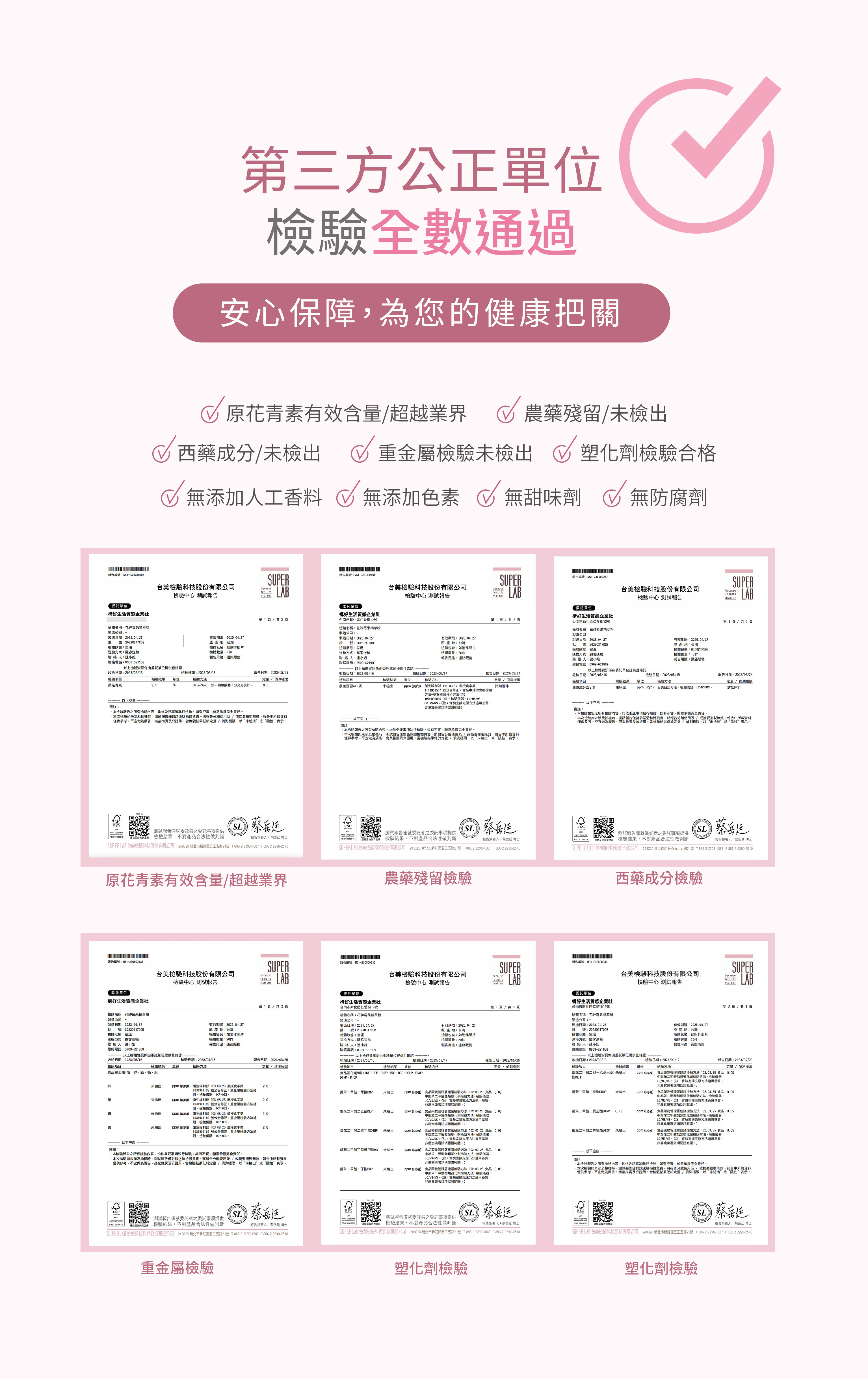 全產品皆通過第三方公正檢驗機構 | 台美檢驗SuperLab
