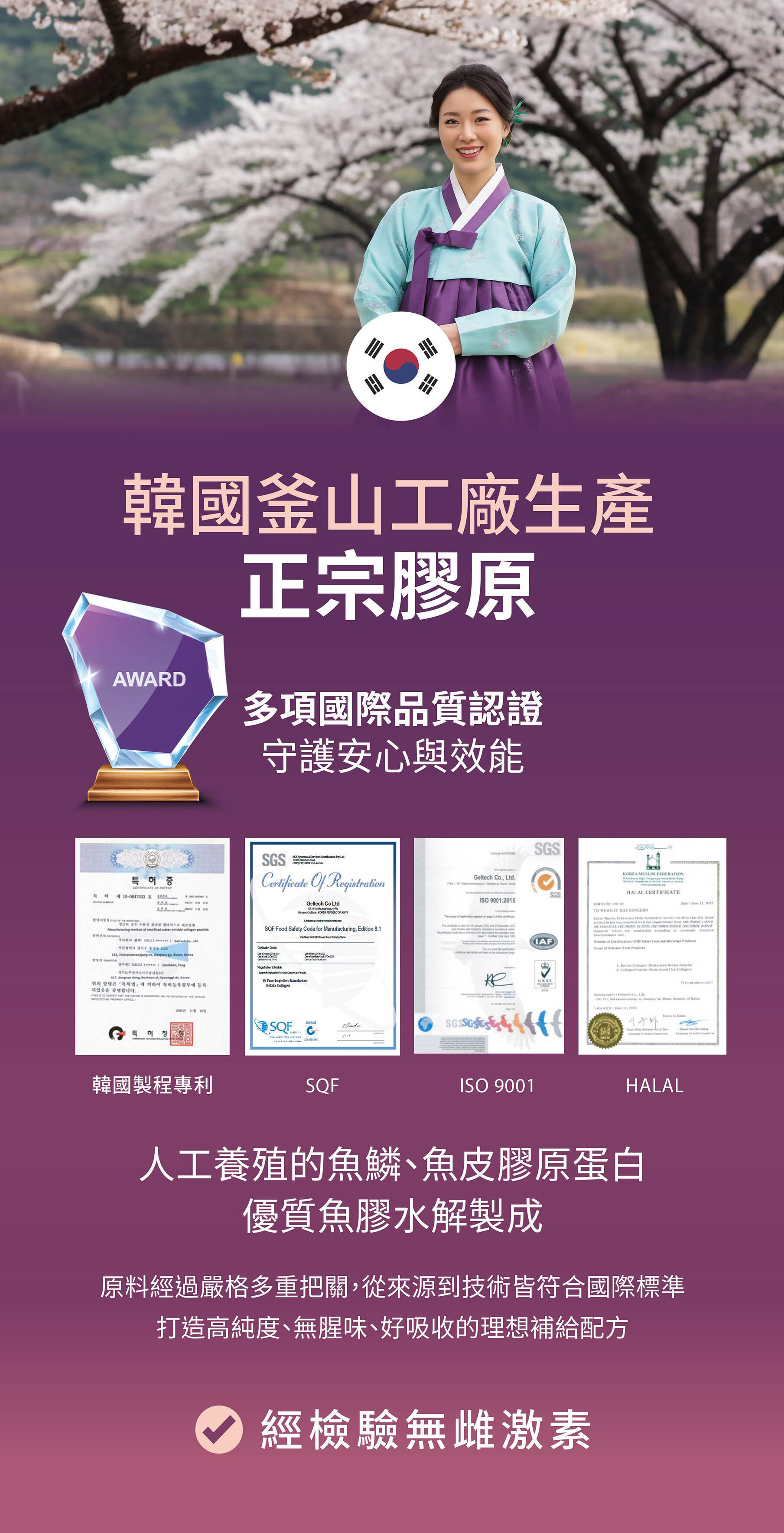 ⊝韓、法雙膠原膠原蛋白,不需高劑量膨潤有感