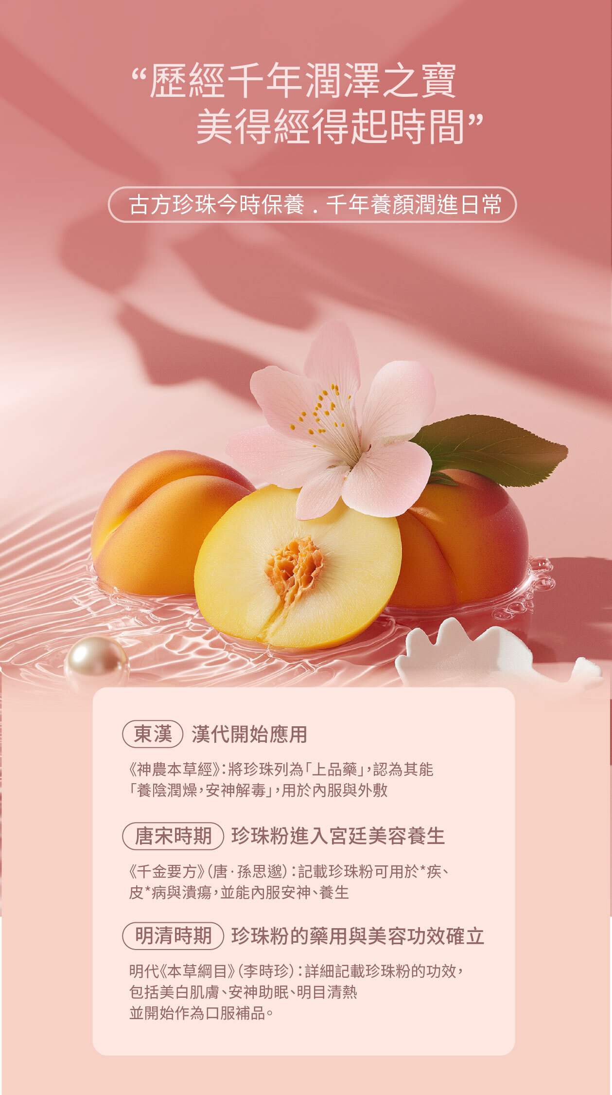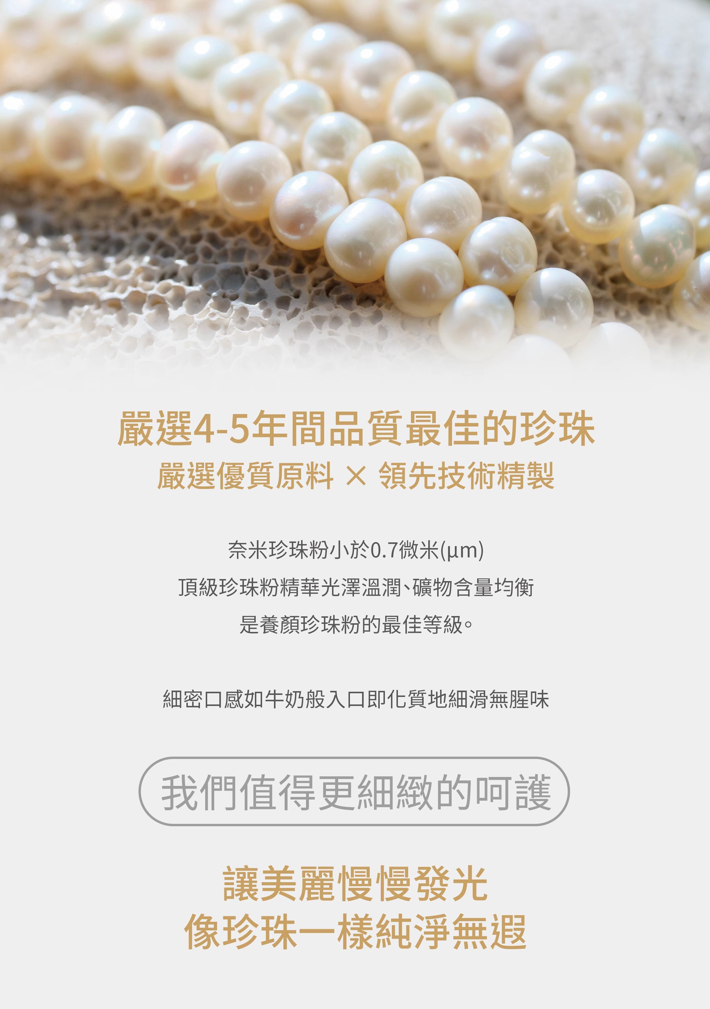 ⊝奈米級珍珠粉,科學研磨呵護每日潤采狀態