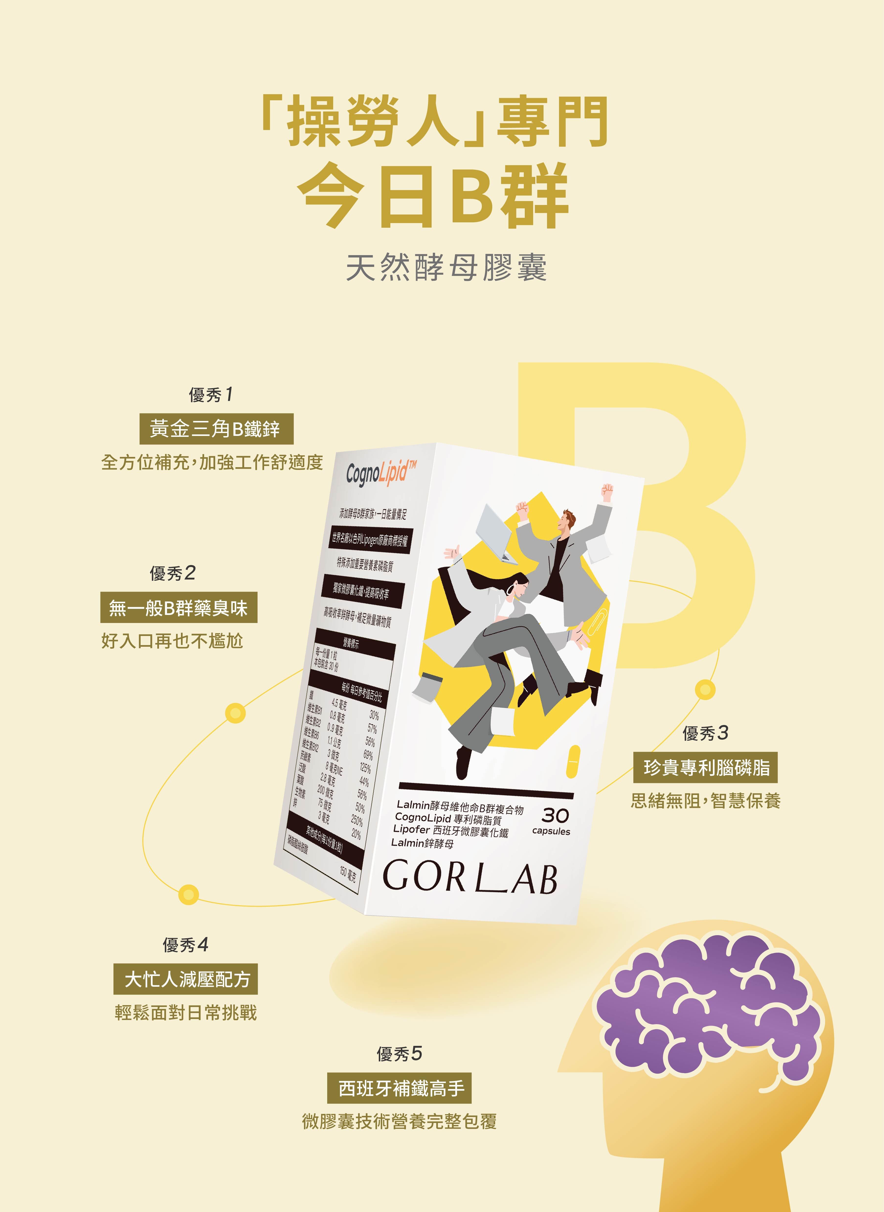⊝添加酵母B群大家族B1、B2、B6、B12等,8種完整維生素B群+18種氨基酸